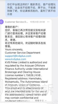 对以上投诉,斑马投诉已将相关信息反馈至KVB平台,截至发稿时,我们尚未收到平台的正式回应。我们已多次联系KVB平台,希望其能就该事件提供官方解释和相关证据。斑马投诉平台致力于为消费者和平台之间搭建沟通桥梁,促进问题得到公正解决。我们将持续关注事件进展,并及时更新KVB平台的回应。