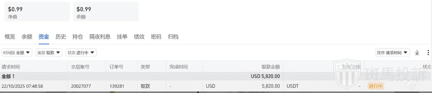 A某表示盈利后,自己便申请出金,至今未到账。无邮件通知无任何提醒,随后封禁账户审查3个月,A某最新反映经过一个月的审核,目前五个交易账户开始退本金,其中三个交易账户,盈利2个,剩下的亏损,盈利的账户只能取本金,亏损的账户,只能取剩下的亏损本金,A某表示希望平台能够退还其盈利。