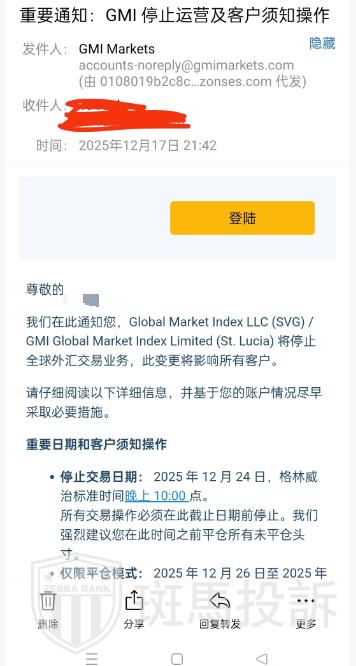 #相信大家在昨晚九点多在各大社群汇圈里看到一则通知,那就是关于GMI平台要关闭全球市场的消息,对此,不少的投资者都表示震惊和不敢相信,成立了十几年的老牌券商GMI真的要停止运营了吗?
