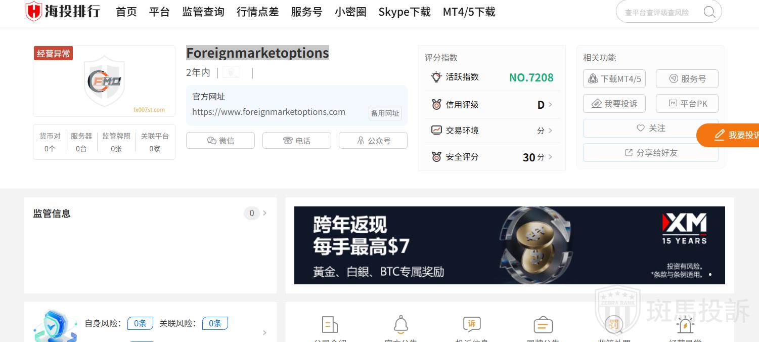 Foreignmarketoptions平台在斑马投诉暂未收到投诉信息。