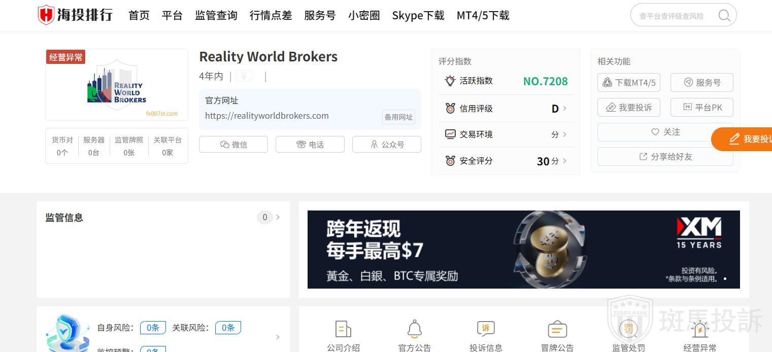 Reality World Brokers平台服务器有0台,