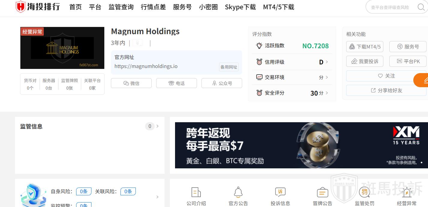 Magnum Holdings平台在斑马投诉暂未收到投诉信息。