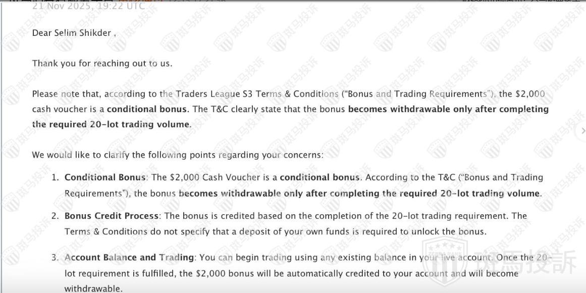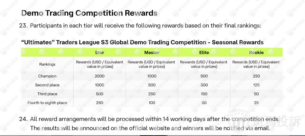近期,斑马投诉平台接到用户反馈:在Ultima Markets的交易冠军奖励未到账。