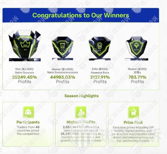 公开宣布我为Traders League S3赛季的#1冠军(星级),奖金是2000美金,至今未到账。