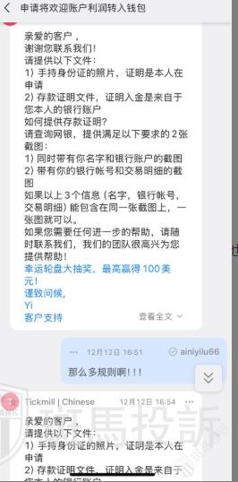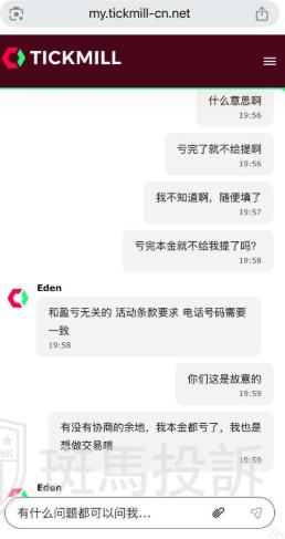 对以上投诉,斑马投诉已将相关信息反馈至Tickmill平台,截至发稿时,我们尚未收到平台的正式回应。我们已多次联系Tickmill平台,希望其能就该事件提供官方解释和相关证据。斑马投诉平台致力于为消费者和平台之间搭建沟通桥梁,促进问题得到公正解决。我们将持续关注事件进展,并及时更新Tickmill平台的回应。