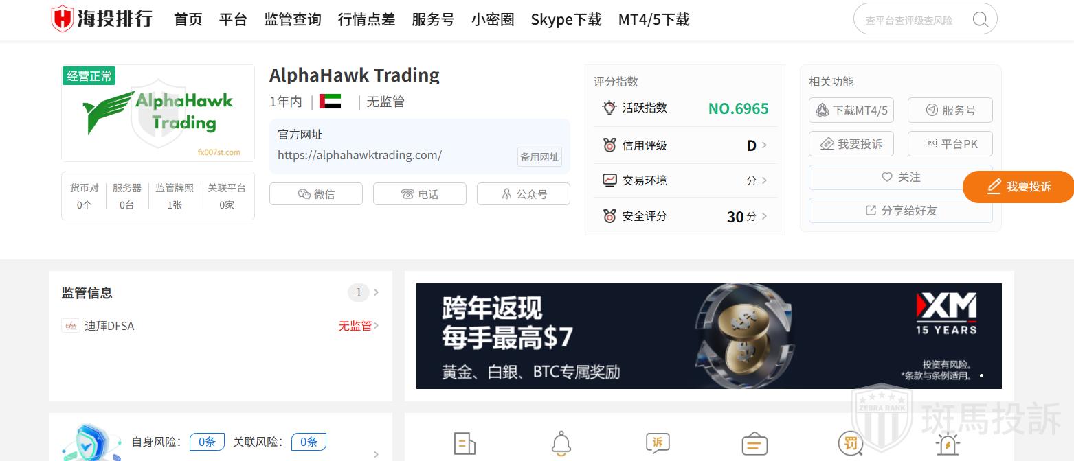 AlphaHawk Trading平台在斑马投诉暂未收到投诉信息。