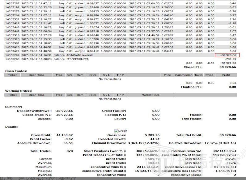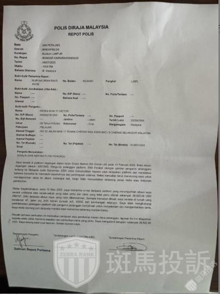据A某提供的后台数据显示,相关三个账户共扣除资金共计约111,828.13美元(5007335扣除账户资金$42,530.38,5006789扣除账户资金$30377.09,5007245扣除账户资金$38920.66)。A某认为平台“未经授权清零资金”,对此表示不认可,目前已向马来西亚警署报警立案。