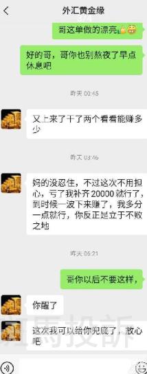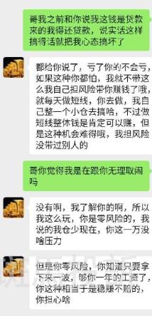 A某提供的沟通记录显示,当时代理商对此回应称“放心,不会出现这种情况”,并提及若出现亏损将由其进行兜底。基于此承诺,A某将账户交由该代理商进行操作。