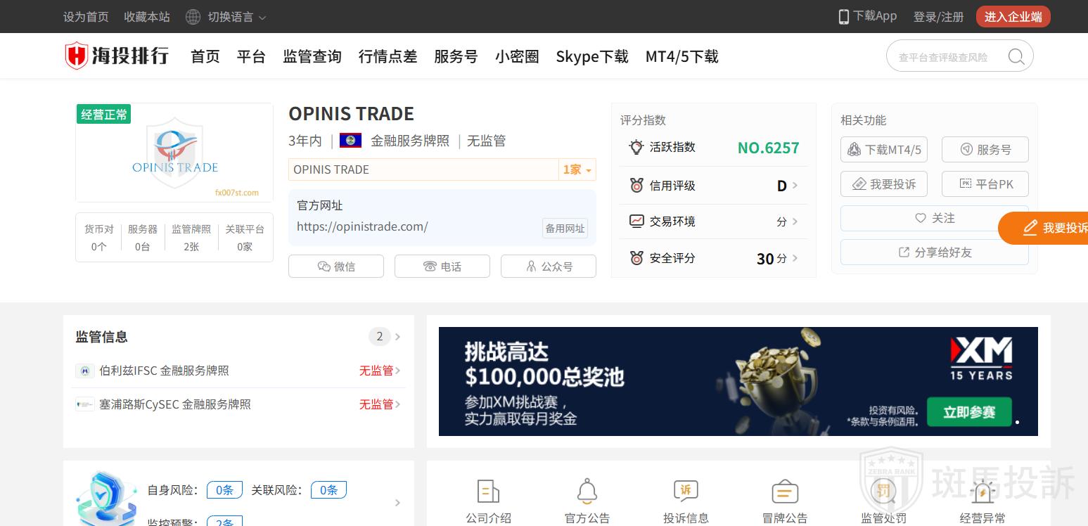 OPINIS TRADE平台目前在斑马投诉未收到相关投诉。