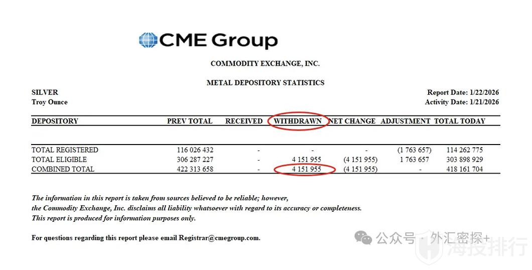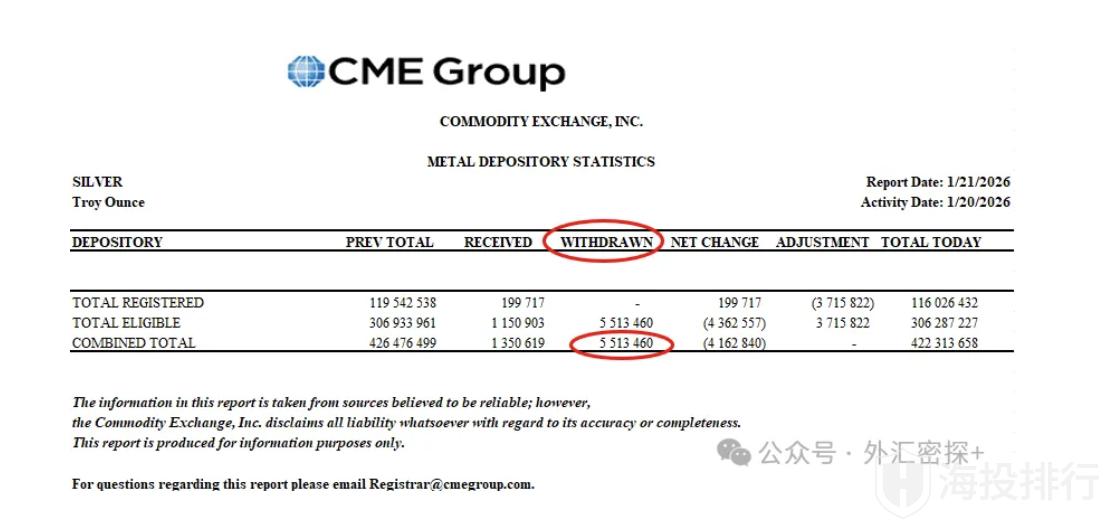 CME交易所大量白银库存被提取。