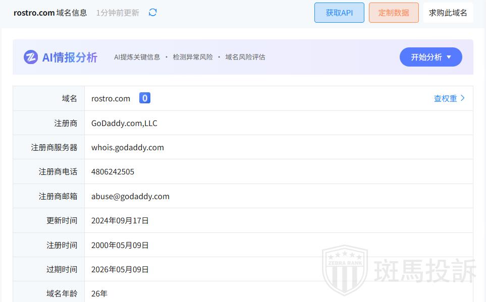 Rostro平台目前在斑马投诉未收到相关投诉。