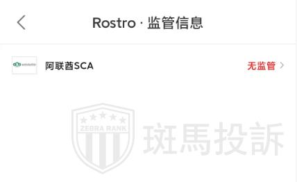 Rostro外汇平台宣称受阿联酋SCA授权并监管,但是经过我们的查找发现并未发现相关监管,因此Rostro平台属于无监管平台,投资者在选择平台时需谨慎。