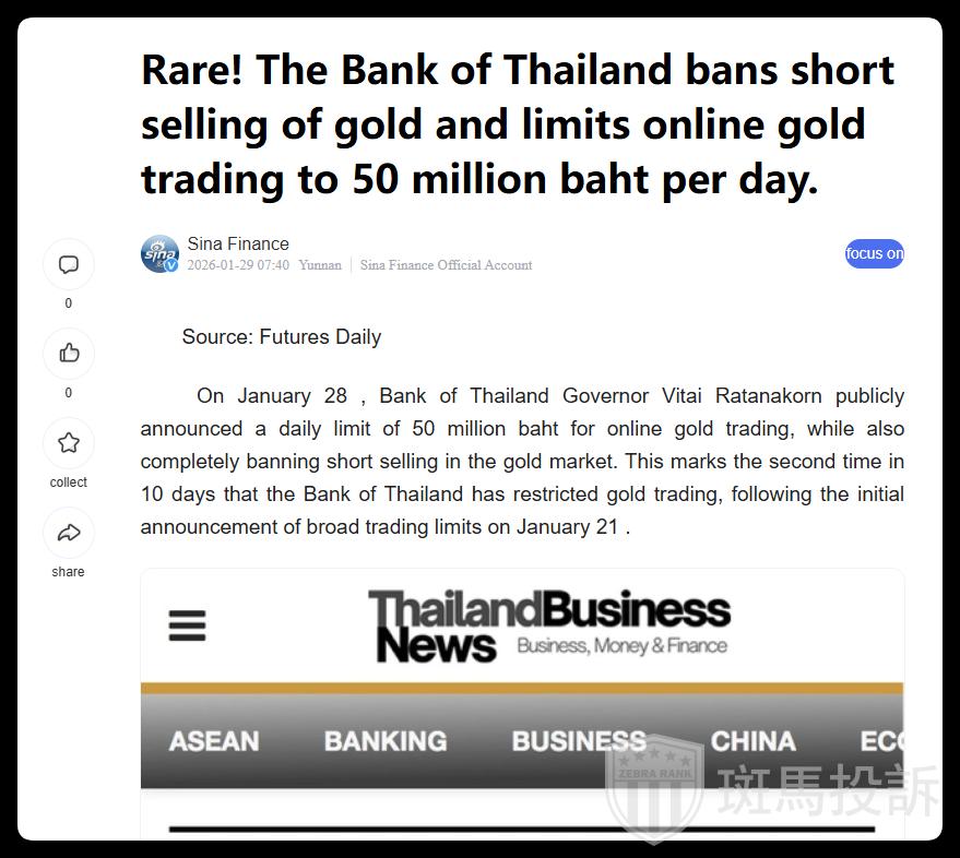 今天,一个极具冲击力的消息被市场捕捉到——泰国央行,正式禁止黄金卖空。