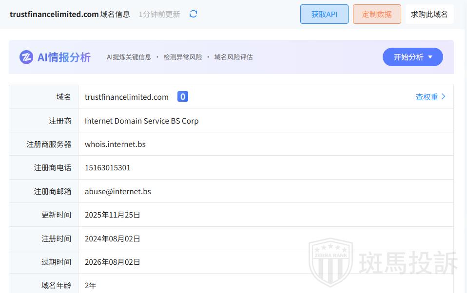 Trust Finance平台目前在斑马投诉未收到相关投诉。