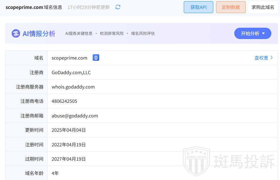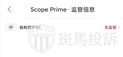 Scope Prime平台目前在斑马投诉未收到相关投诉。