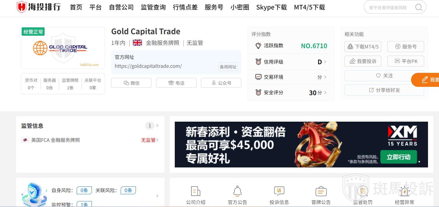 Gold Capital Trade平台目前在斑马投诉未收到相关投诉。