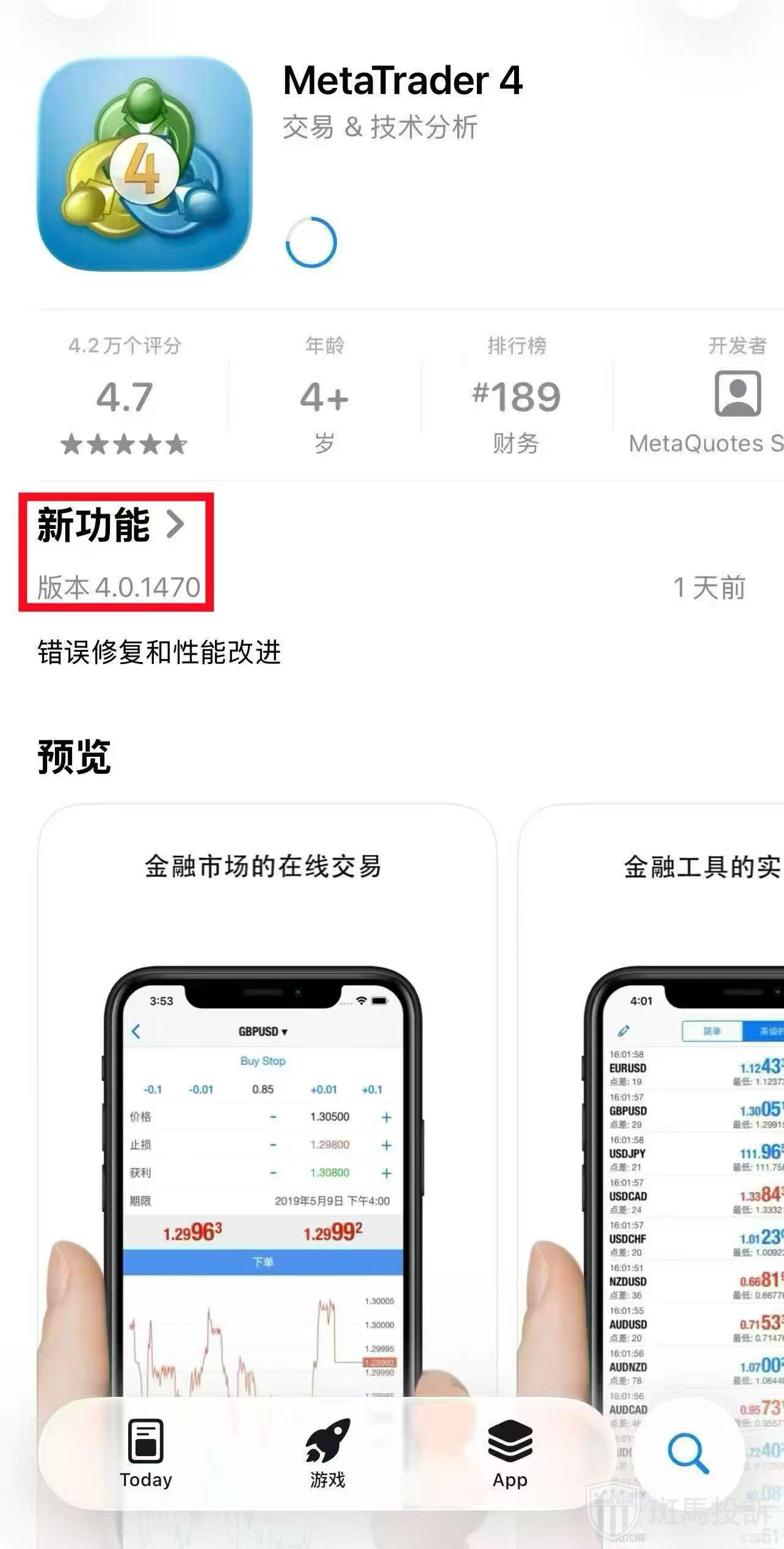 目前用户只需要在App Store搜索“MetaTrader4”,点击更新即可恢复正常使用。