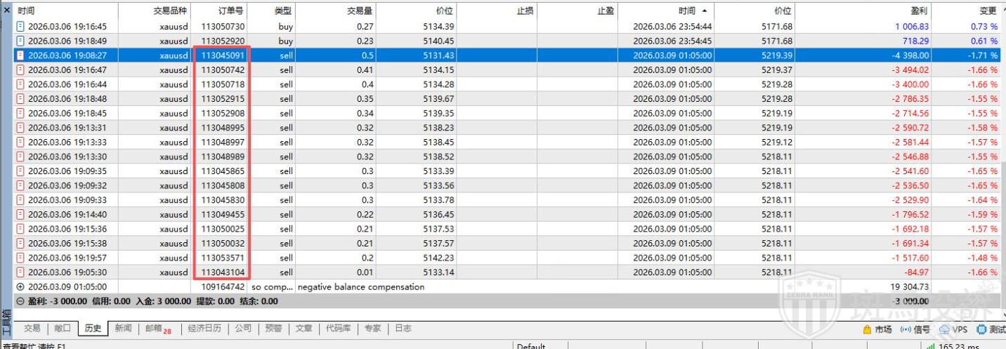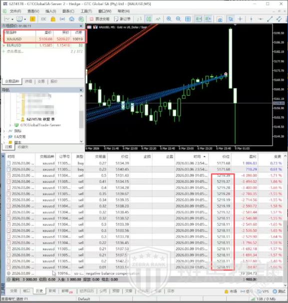 A某表示,他是在GTC平台开户入金交易的,在3月6号晚上在该平台的账号入金的3000美金进行交易,然而事情发生在3月6号晚上,开仓做空黄金,但是3月9号周一开盘,黄金点差直接扩大到100美金这么夸张的点差,导致账户爆仓。