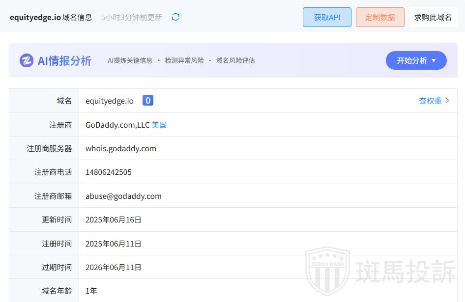 这家平台叫Equity Edge,成立于2025年,目前有1家监管,1张外汇牌照,不能做外汇保证金交易,风险扫描显示3条风险,投资者资金安全有保障。