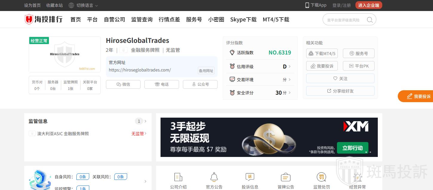 HiroseGlobalTrades平台目前在斑马投诉未收到相关投诉。