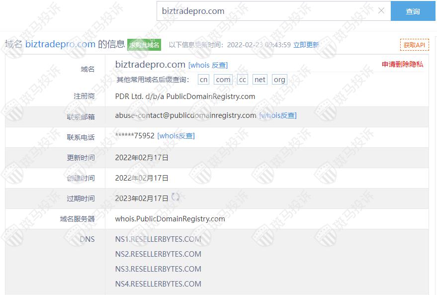 Biz Trade Pro平台服务器有1台,在英国。