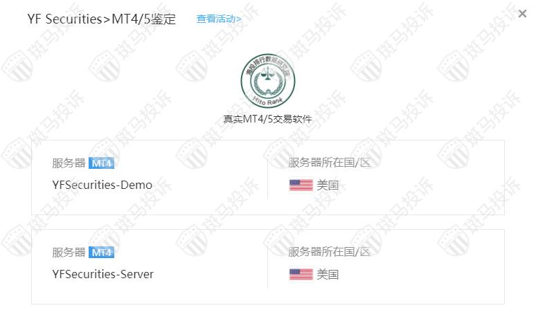 YF Securities平台服务器有2台 ,在美国。