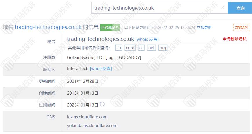 主白标关系显示,Trading Technologies平台和停止经营的MarketBrokers平台是一家公司,从他们的服务器地址,网站的模板来看,都可以看出来相似的地方。