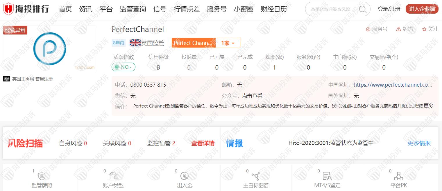 PerfectChannel平台成立于2014年,由英国工商局监管,风险扫描显示2条风险,投资者需注意其风险提示信息。