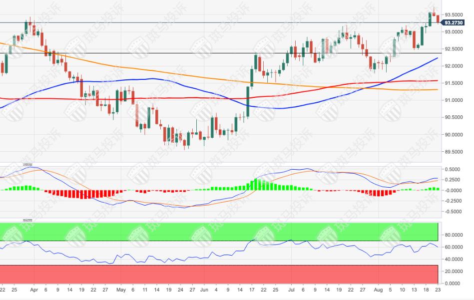 最初的支撑位于93.20区域。
