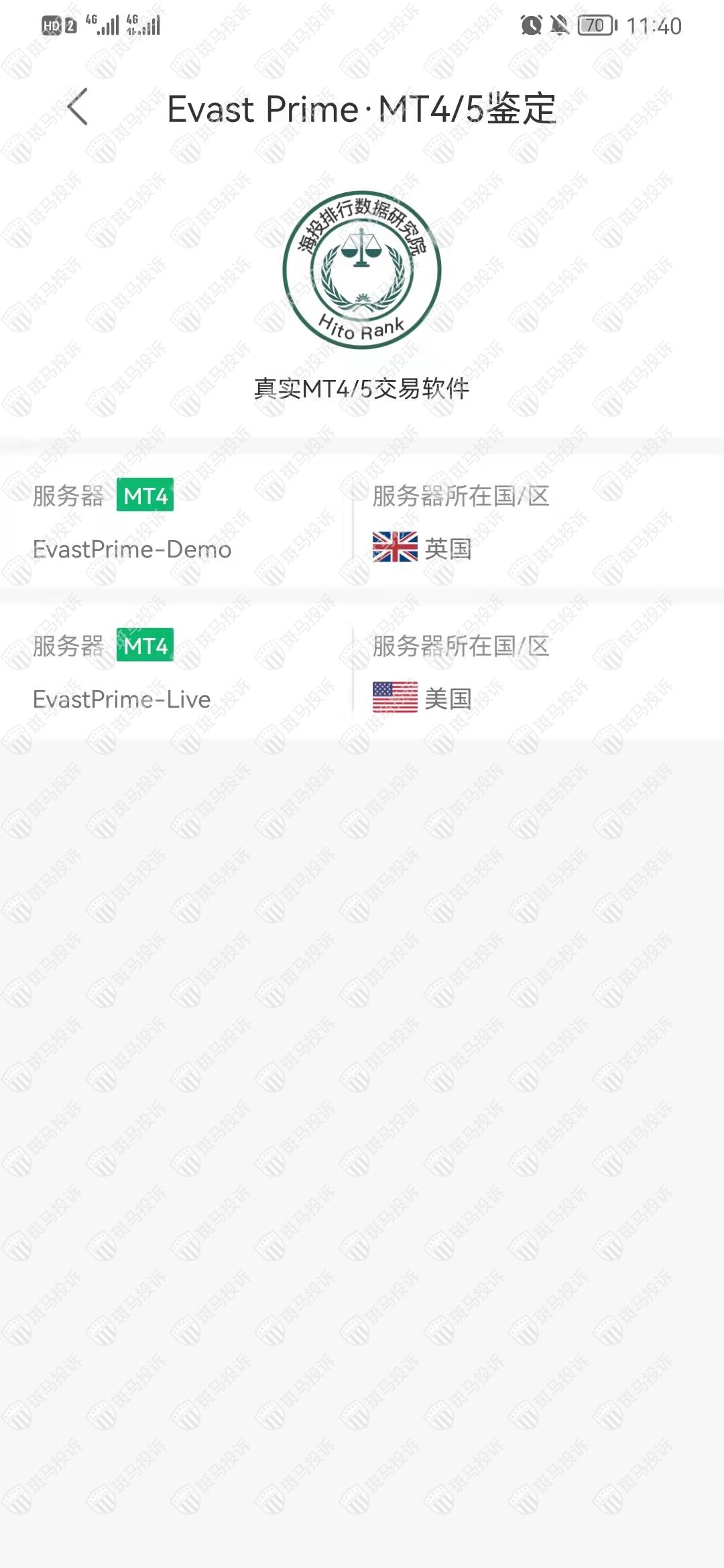 Evast Prime平台服务器有2台,在英国和美国。