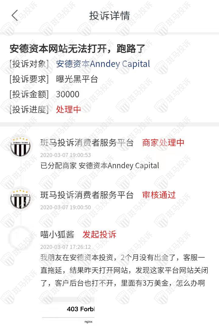 今天要向大家爆料一家平台,因为“安德资本网站无法打开,跑路了”问题被用户投诉,大家要注意这家平台最近的服务质量和交易环境。