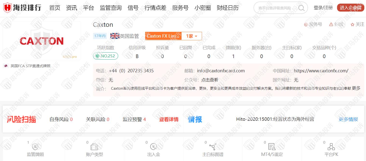 Caxton平台成立于2006年,风险扫描显示4条风险,投资者需注意其风险提示信息。