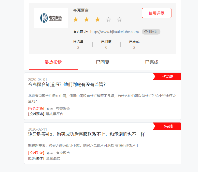 夸克聚合平台现在在斑马投诉有2条投诉,其中2条已处理。