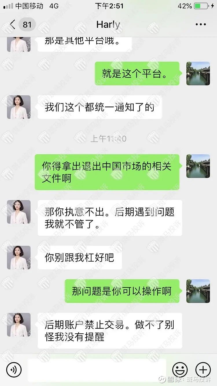 有用户反馈:工作人员借口石头证券退出中国市场而威胁说,如果自今天下午做不了交易,别怨她。还说:已经善意提醒,换成别的平台,连提醒都不会给我。