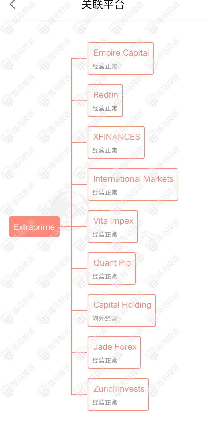 主白标关系显示,Extraprime平台和9家平台存在关联,其中一家是在海外经营,其余尚经营正常。