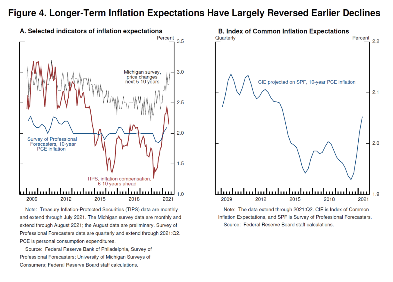 长期通胀预期的变化远远小于实际通胀或短期的预期,这表明家庭、企业和市场参与者也认为目前的高通胀可能被证明是临时性的,而且,在任何情况下,美联储都将把通胀率保持在接近2%的政策目标。