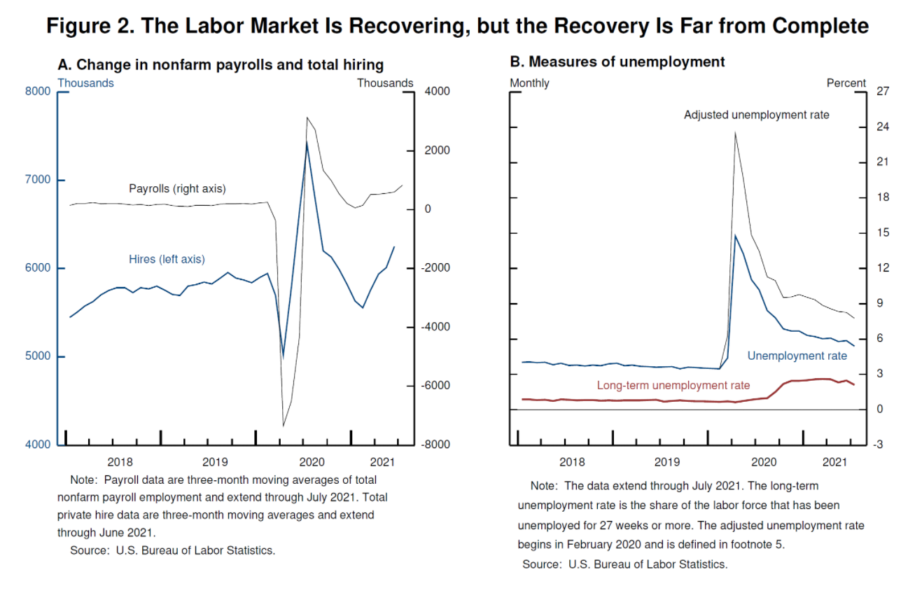 随着疫苗接种率的上升,学校重新开学以及失业补贴的到期,一些可能阻碍求职者的因素可能正在消退。虽然Delta疫情重燃了近期的风险,但经济继续向充分就业水平迈进的前景是良好的。