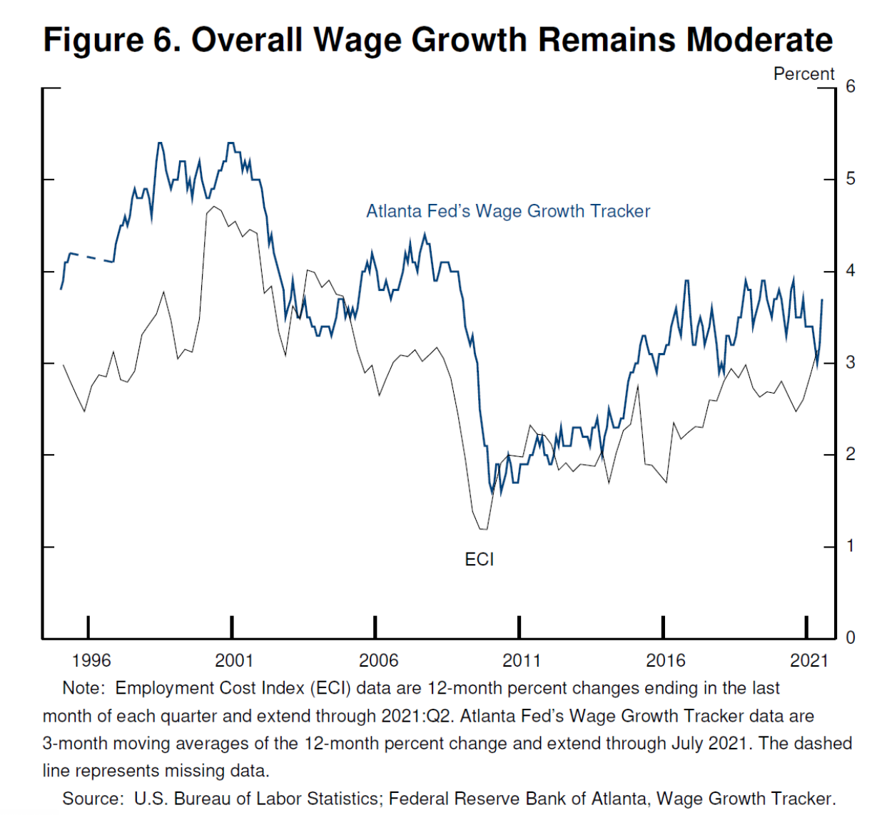 今天,我们几乎没有看到可能带来过度通胀的工资增长的证据。根据劳动力构成变化进行调整的广义工资衡量指标,如就业成本指数(ECI)和亚特兰大工资增长跟踪指标,显示工资上涨的速度似乎与我们的长期通胀目标一致。我们将继续仔细监测工资的进展。