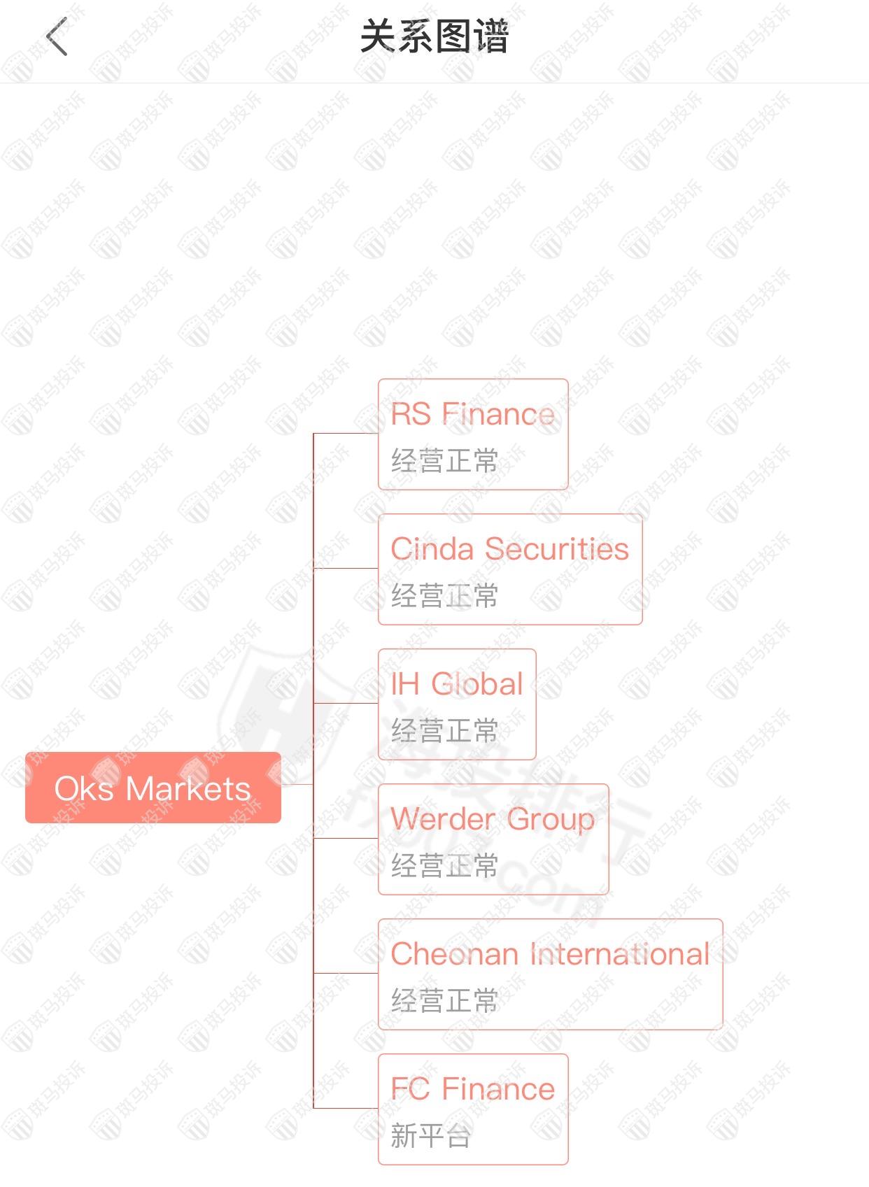 主白标关系显示,Oks Markets平台和6家平台存在关联。