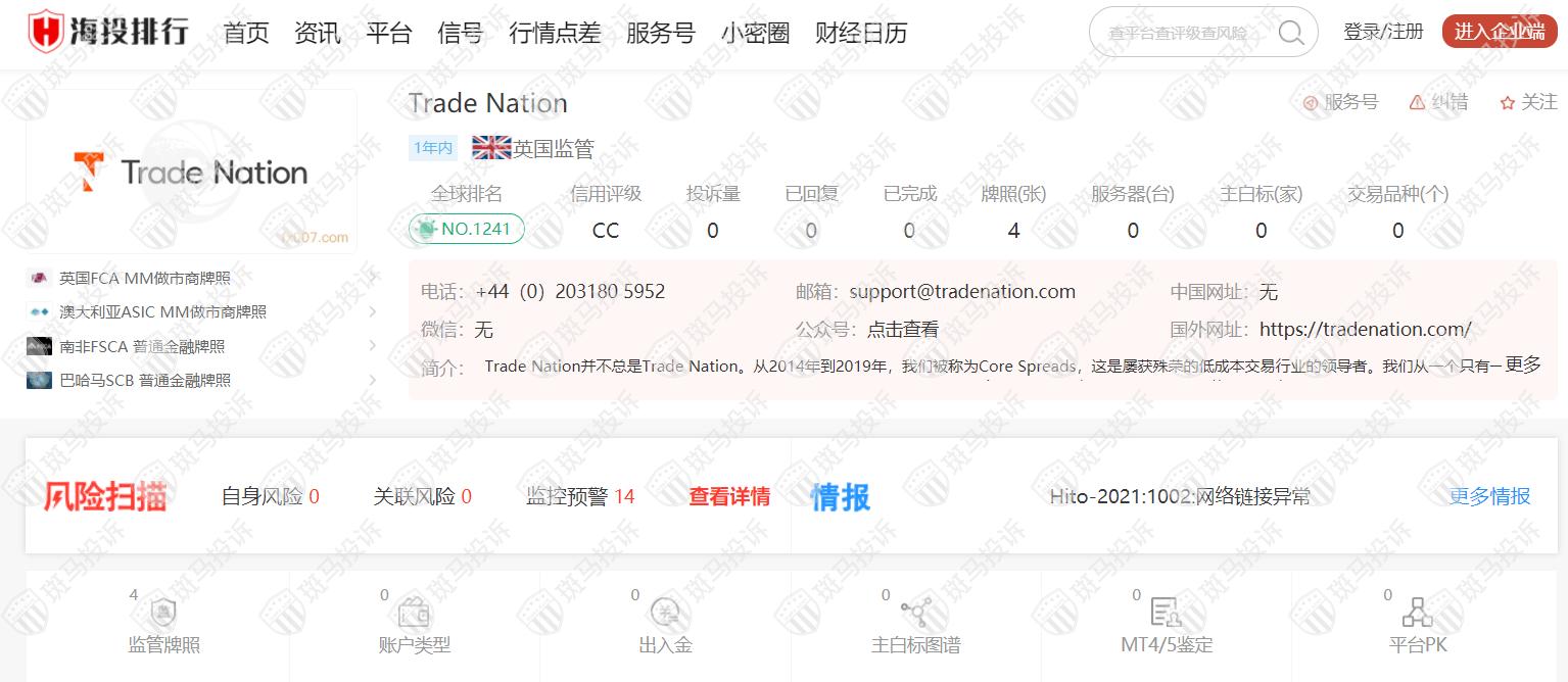 二、据海投排行上的Trade Nation平台信息: