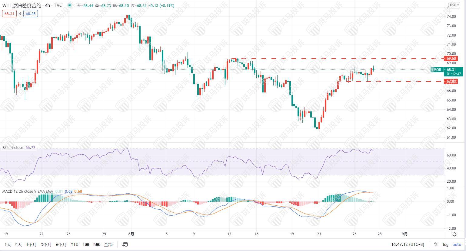 斑马投诉报道:我选择在周三下午67点5分提取更多原油。目标是看看8月12日69.5的高点。经过两天的震荡后,原油上涨被推迟。今天早上,MACD原油快线和慢线都已停运。我认为原油即将开始大幅波动。我们需要存入超过67.5美元的订单,为低回收率做好准备。然后原油上涨,RSI进入超买区域。如果原油像这样流动,隔夜,原油继续在67.5一线波动。美股开盘后,67一线支撑位两次测试,最终日线以小实负柱结束!