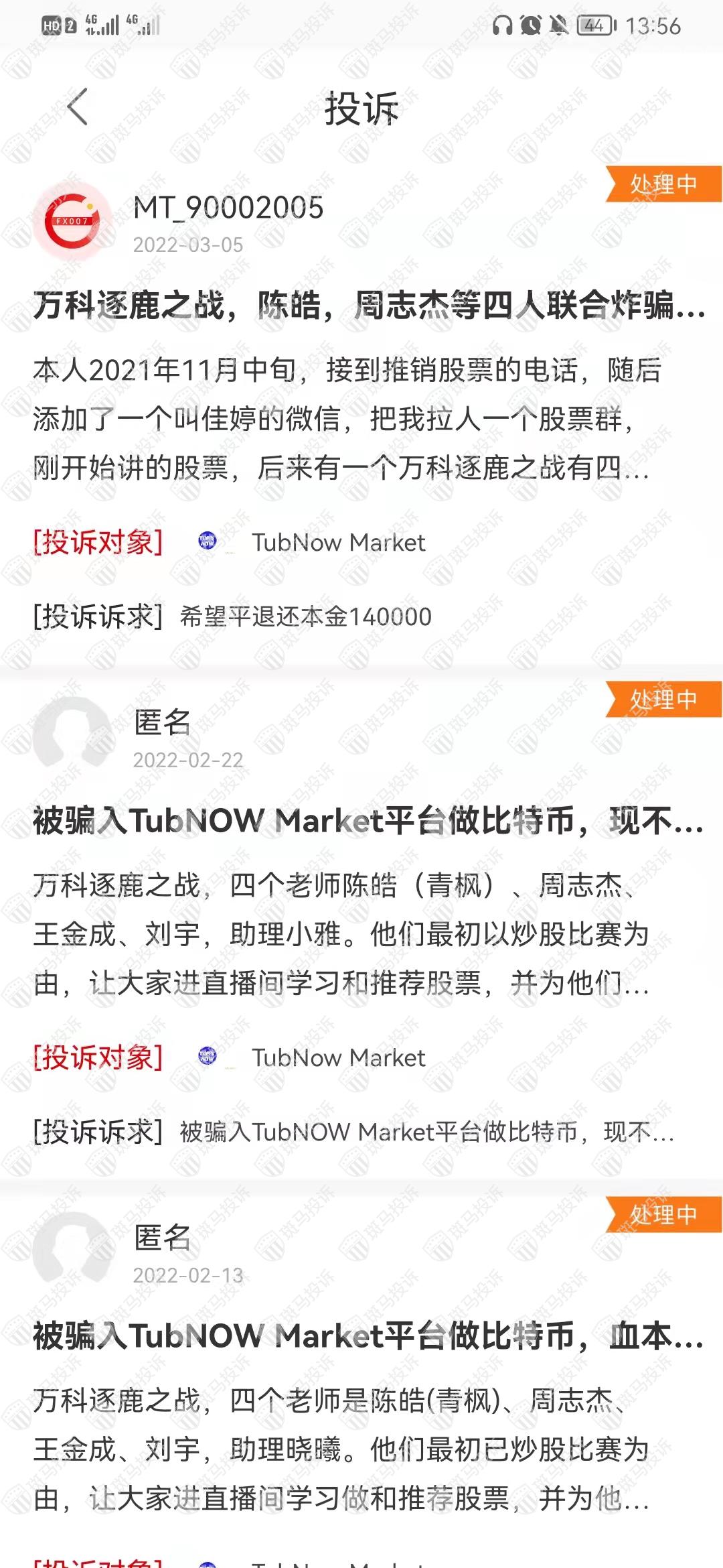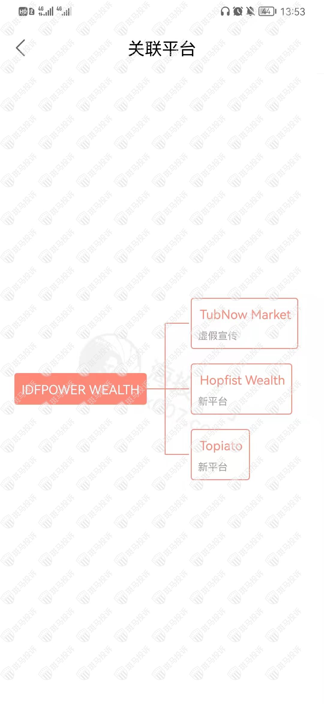 IDFPOWER WEALTH的关联平台TubNow Market平台在斑马投诉已收到53条投诉,都仍在处理中。