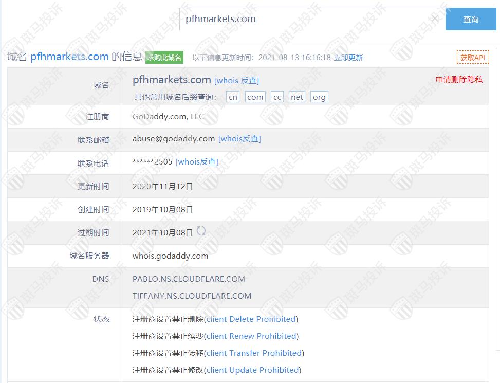 主白标关系显示PFH Markets平台和2家平台是一家公司,从他们的服务器地址,网站的模板来看,都可以看出来相似的地方。