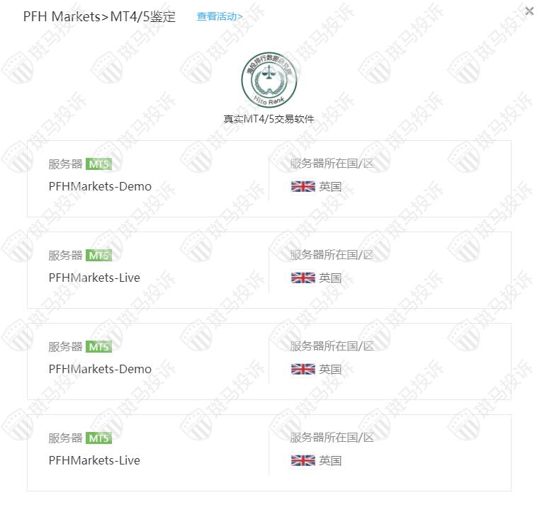 PFH Markets平台服务器有4台 ,在英国。