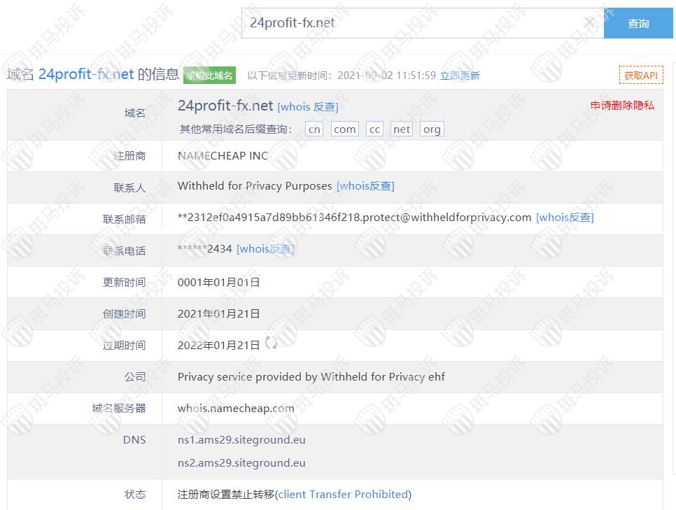 主白标关系显示24 Profit-FX平台和1家平台是一家公司,从他们的服务器地址,网站的模板来看,都可以看出来相似的地方。