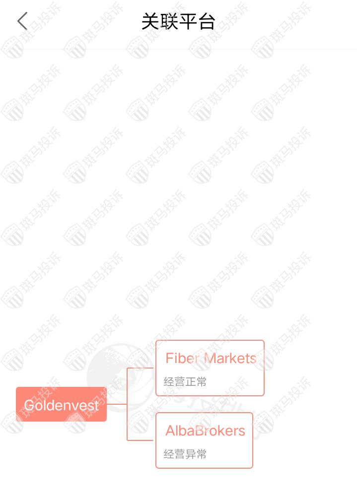 主白标关系显示,Goldenvest平台目前和2家平台存在关联,其中一家经营正常,一家经营异常。
