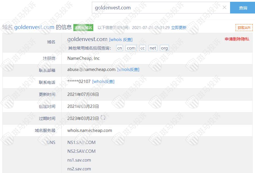 Goldenvest平台服务器有2台,均在美国。