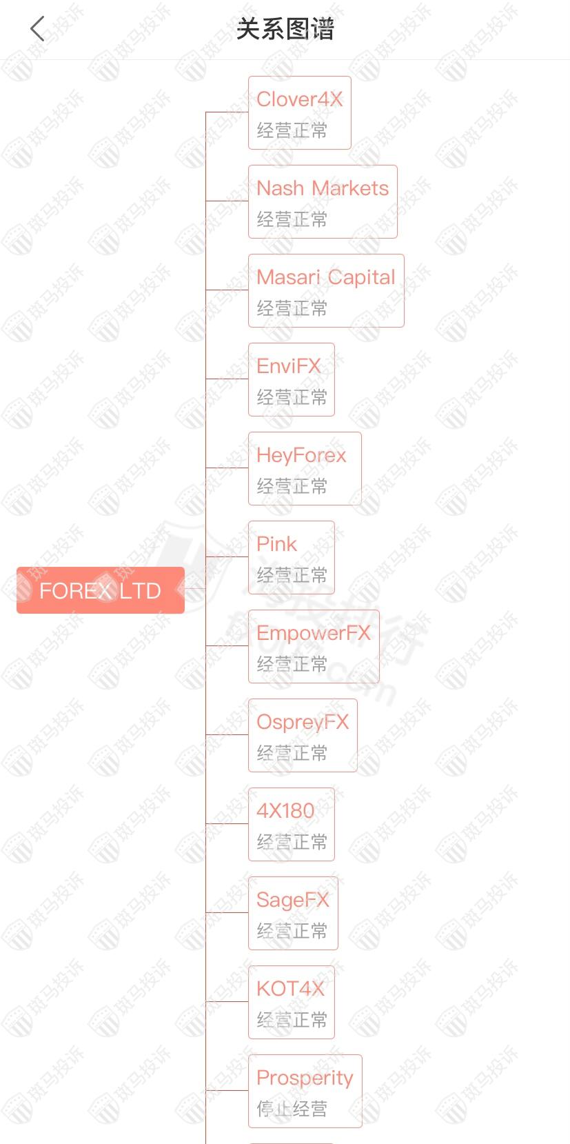 主白标关系显示FOREX LTD平台和19家平台是一家公司,从他们的服务器地址,网站的模板来看,都可以看出来相似的地方。其中Prosperity停止经营。