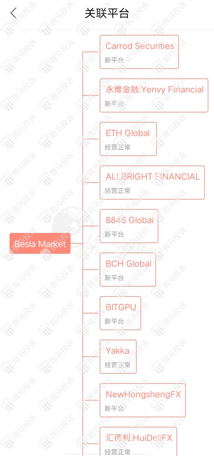 主白标关系显示,Besla Market平台目前和22家平台存在关联。