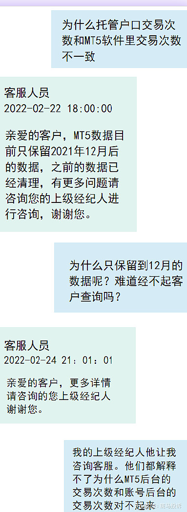 而且现在TR后台的交易次数和MT5的交易次数 交易金额 经常出现对应不起来,没有人能解释原因。老的数据在21年底,被大批的删除了。删除老数据,不过是减少被查出时候的证据罢了。